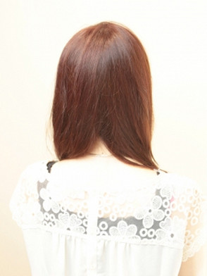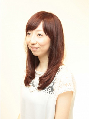 胸下のロングレイヤーがベース。中間から毛先にスライドカットを入れ、程よく動きをだします。前髪は、眉上でラウンドにカット。重めのロングスタイルに飽きてしまった人や、ちょっと華やかにイメチェンしたい人におすすめします。